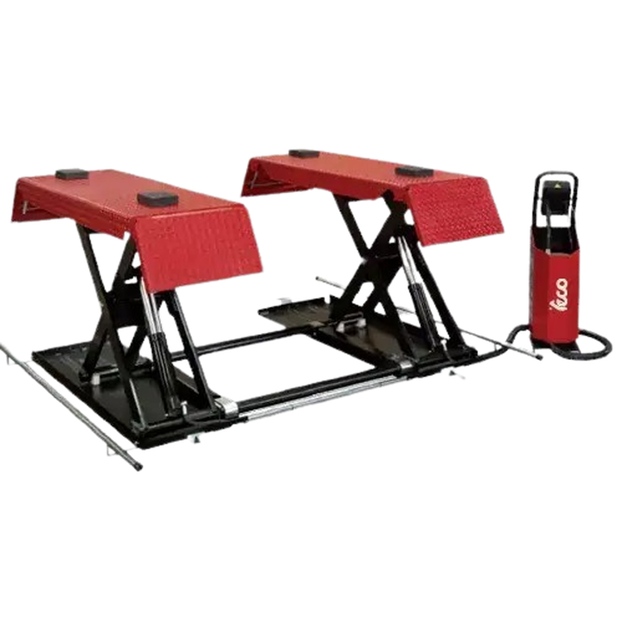 Ел. мотор с мощност 3kW, трифазно захранване. Автоматично механично заключване с пневматично управление. Защита на краката на оператора при спускане.