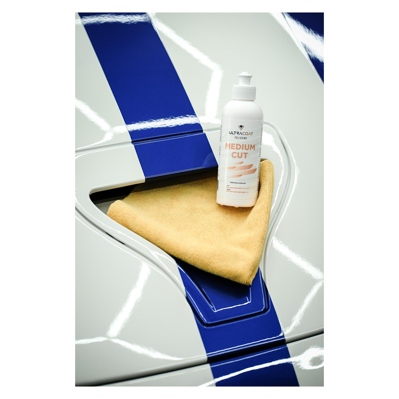 Ultracoat Medium Cut работи най-добре в комбинация със средно твърди полиращи гъби. Подходящ е за всички видове полиращи машини. В комбинация с машина с двойно действие оставя страхотен завършек без холограми. Работата е по-приятна благодарение на финия, плодов аромат.